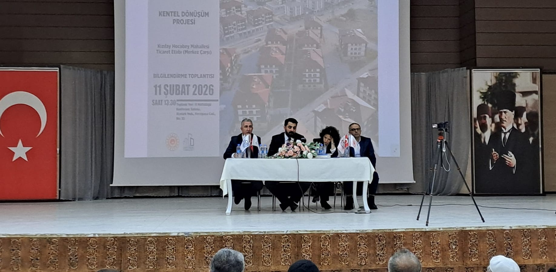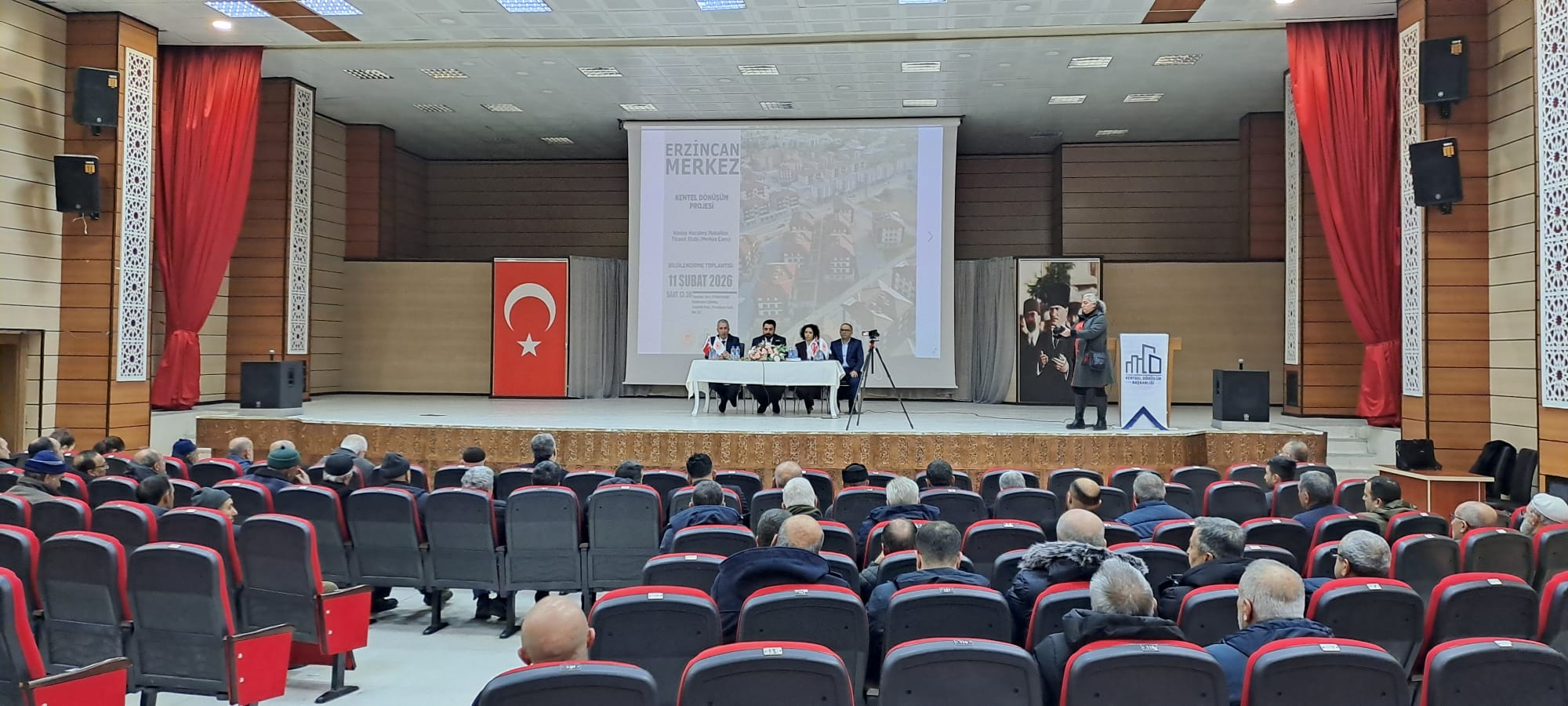 Erzincan İli, Merkez İlçesi, İnönü ve Kızılay Mahallesi sınırlarında bulunan ve 6306 sayılı Kanun kapsamında rezerv yapı alanı olarak belirlenen Merkez Çarşısı Kentsel Dönüşüm Projesinin 4. Etabı olan Kızılay Mahallesi sınırlarındaki ticaret birimlerinin dönüşüm senaryosuna ilişkin olarak Kentsel Dönüşüm Başkanlığı 4 Nolu Dönüşüm Alanları Daire Başkanı Sn. Erdem AYDOĞAN başkanlığında teknik personellerin katılımı ile 11.02.2026 tarihinde müftülük konferans salonunda “Bilgilendirme Toplantısı” tertiplenmiş ve 4. Etapta hak sahibi olan vatandaşlarımıza gerekli bilgiler verilerek Erzincan’ımıza değer katmayı hedefleyen Merkez Çarşısı Kentsel Dönüşüm sürecinin Erzincanlı hemşerilerimize hayırlara vesile olması temennisi ile toplantı son bulmuştur.